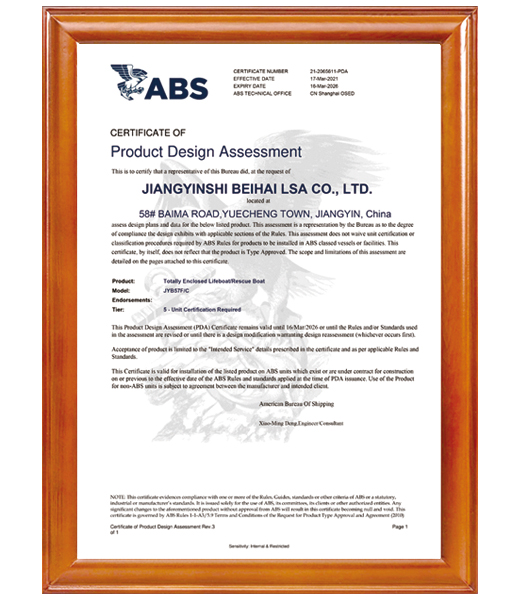 江陰市北海救生設備有限公司是一家專注于高性能船艇,救生/救助艇,水面無人艇,和收放裝置的設計、研發(fā)、生產(chǎn)、銷售及服務的有限公司;公司具有一級Ⅱ類纖維增強塑料船舶生產(chǎn)資質(zhì),二級鋁質(zhì)船舶生產(chǎn)企業(yè)資質(zhì)和三級Ⅱ類鋼質(zhì)船舶生產(chǎn)資質(zhì)。